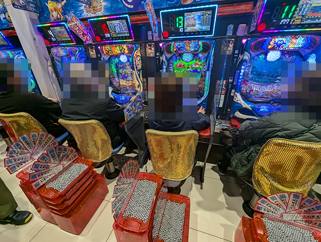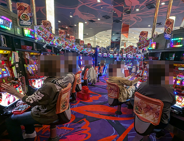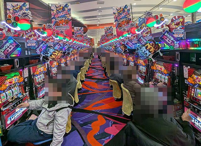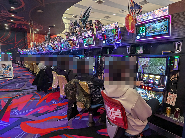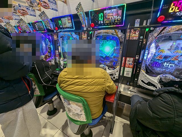 店内をまわっていくと、パチスロとパチンコの両方のシマで、遊技を満喫しているようなプレイヤーを目にした。