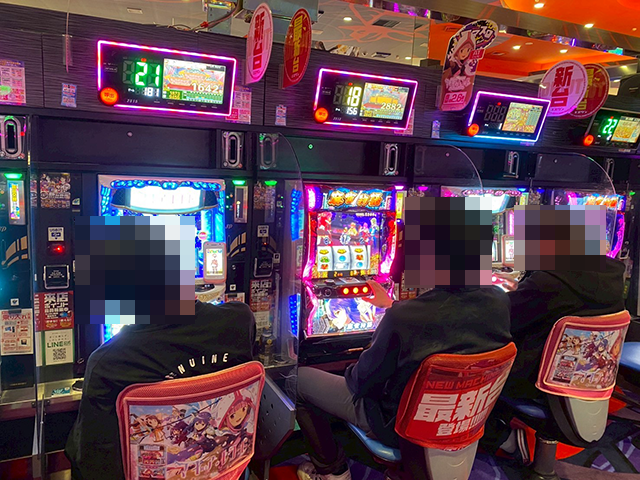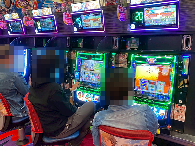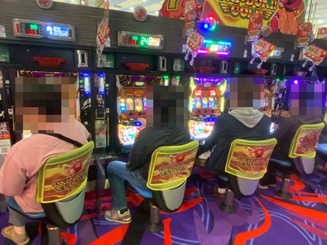 明るい表情で遊技をおこなっている姿が並び、シマ内は活況となっていた。