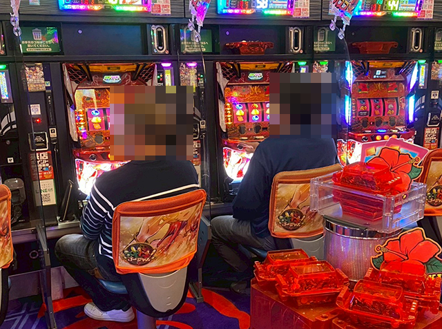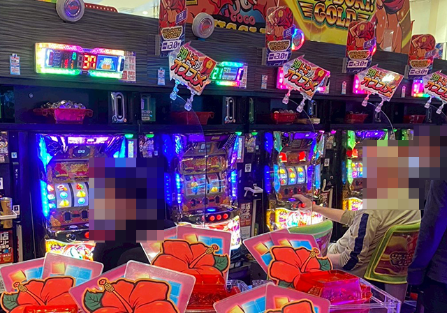 取材時は、「沖ドキ!ゴージャス-30」と「沖ドキ!GOLD-30」に、6箱以上の持ち玉で遊技をおこなっている姿があった。