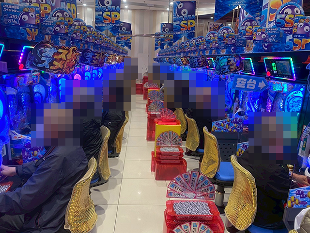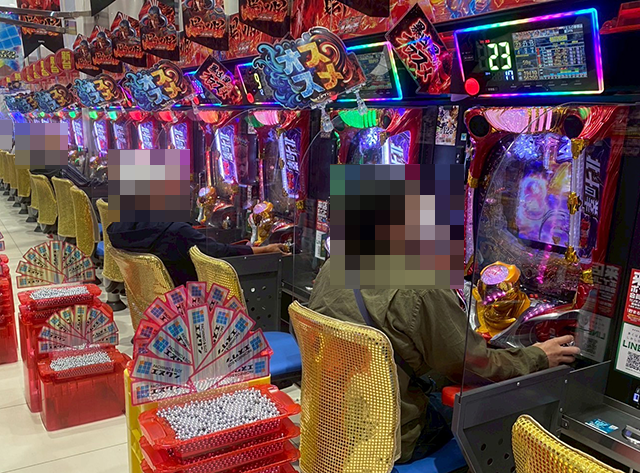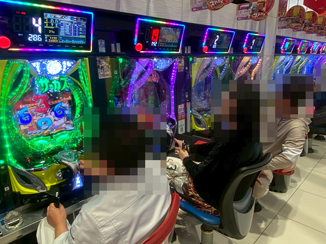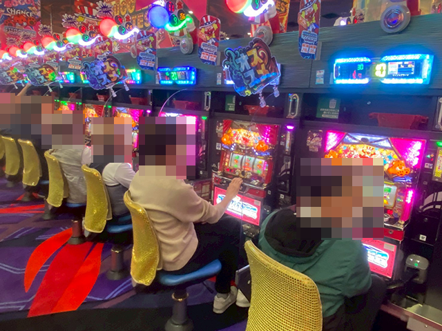 魅力的なシーンをカメラにおさめるべく、パチスロコーナーからみていこう。