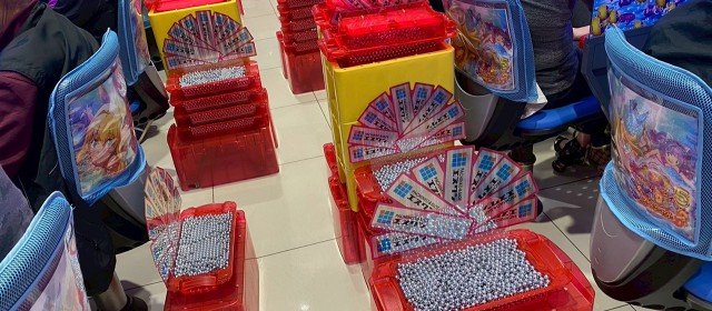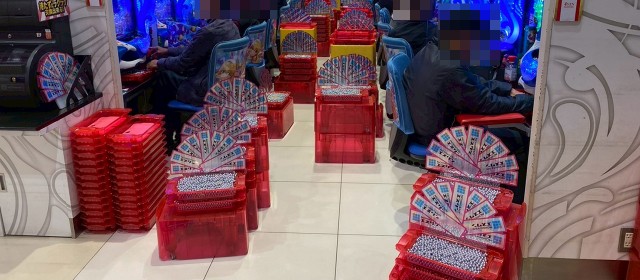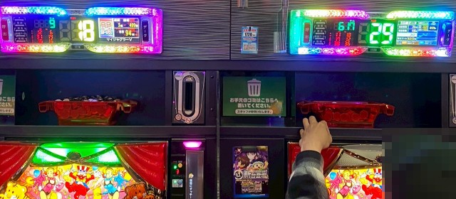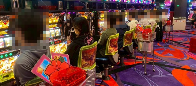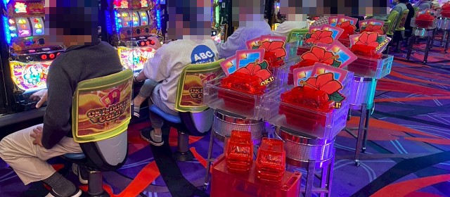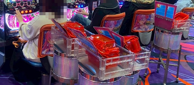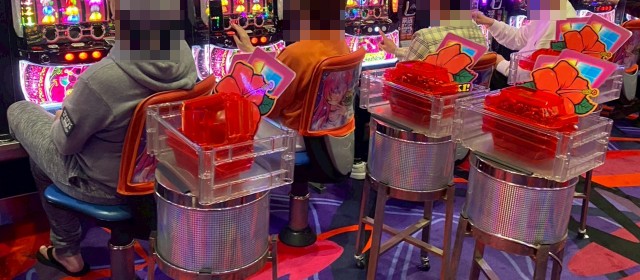 また『マイジャグラーⅤ』では並びでドル箱を使用する台が見受けられた。