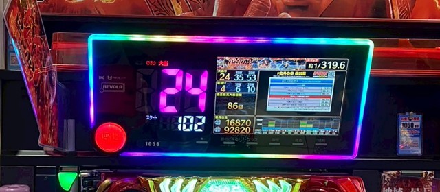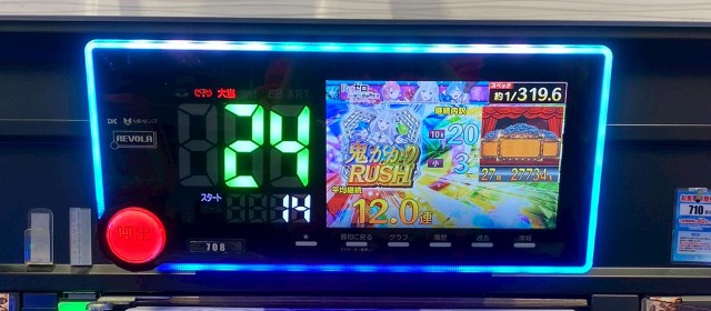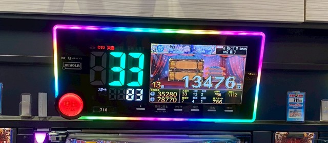 表示枚数5,000を超えたのは『スマスロ 緑ドン VIVA!情熱南米編 REVIVAL』『パチスロ からくりサーカス』『L 東京喰種』『L戦国乙女4 戦乱に閃く炯眼の軍師』『スマスロ ようこそ実力至上主義の教室へ』『パチスロ 革命機ヴァルヴレイヴ』といった機種。さらにそれに次ぐ成績の台が店内の随所で目に付いた。