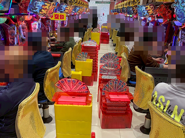 持ち玉を使い、うれしそうに遊技をおこなっている姿が多かった。