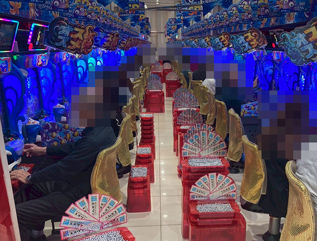 持ち玉を使い、うれしそうに遊技をおこなっている姿があちこちにあった。