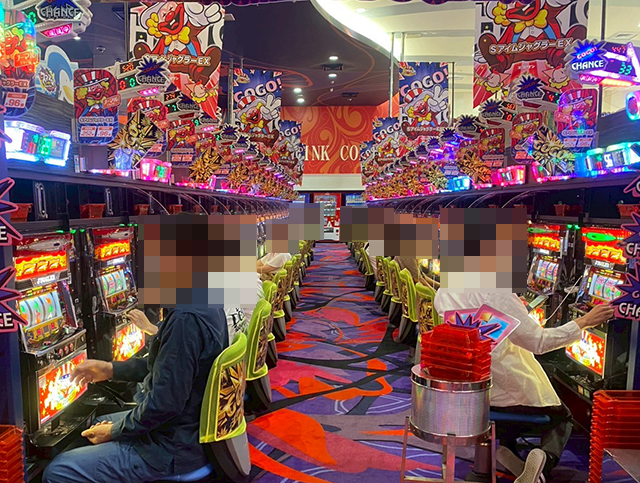プレイヤーたちが2箱以上の持ち玉を使い、うれしそうに遊技をおこなっていた。