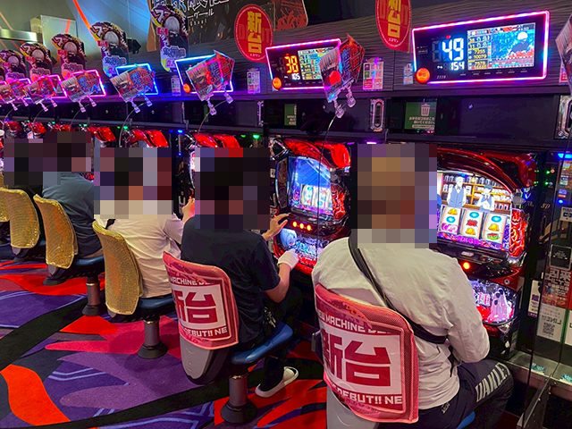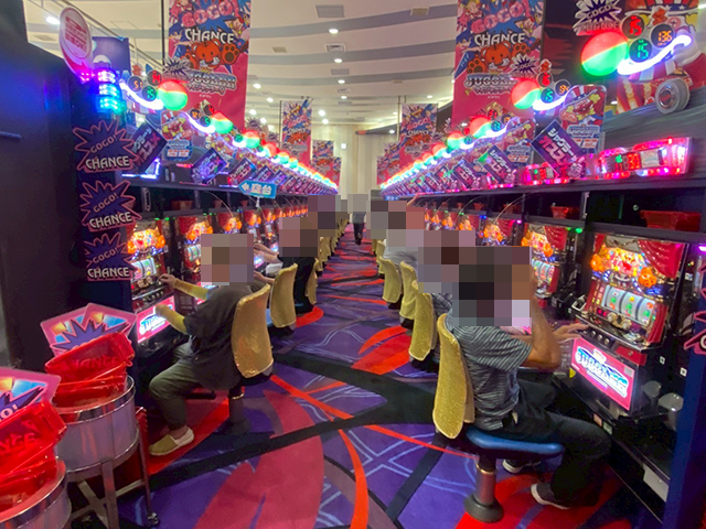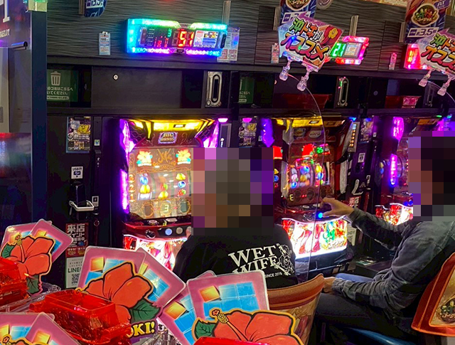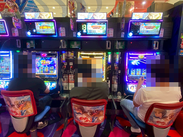 「マイジャグラーⅤ」には1箱以上、「アイムジャグラーEX」には2箱以上の持ち玉で、うれしそうに遊技をおこなう姿があった。