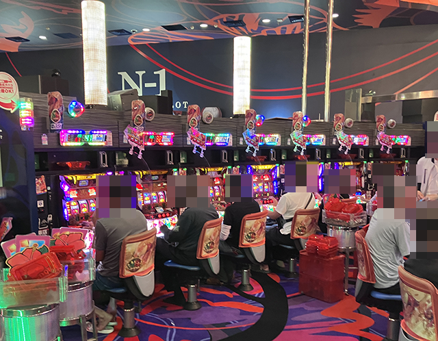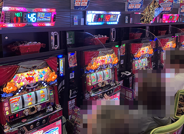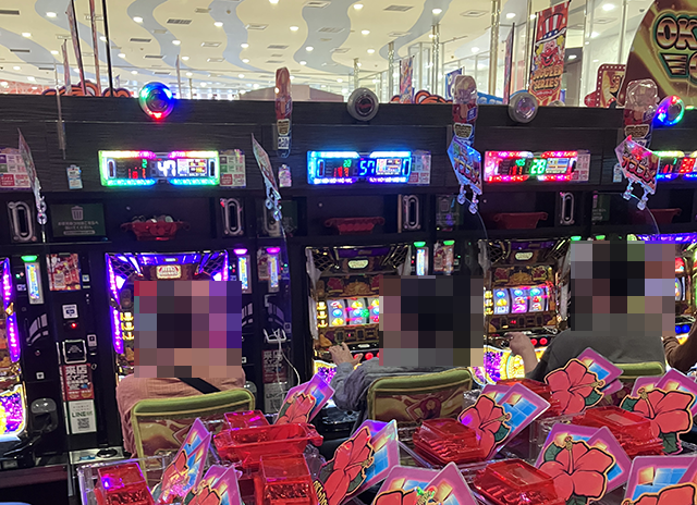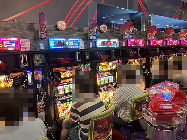「マイジャグラーⅤ」や「アイムジャグラーEX」など、あちこちに充実した時間を過ごしているような姿があった。