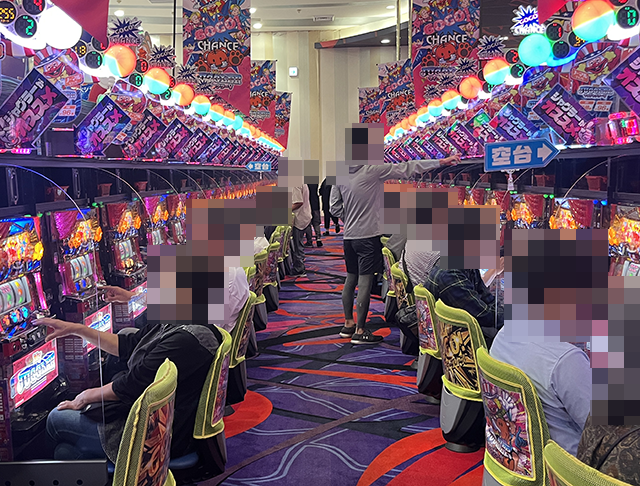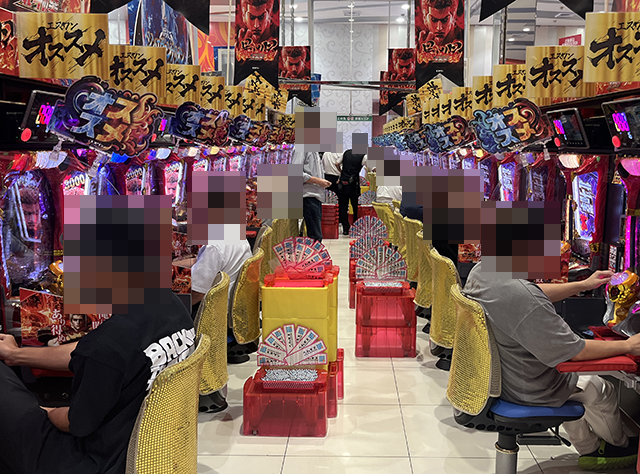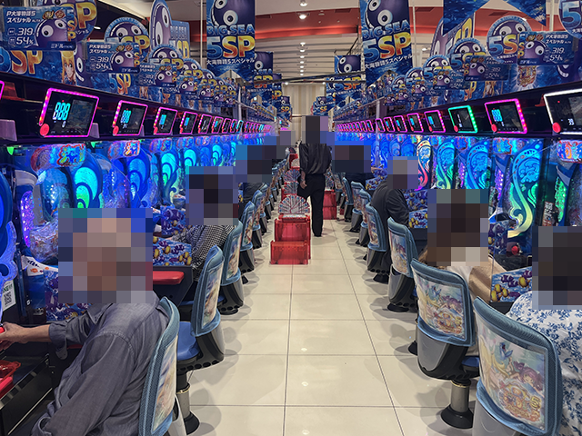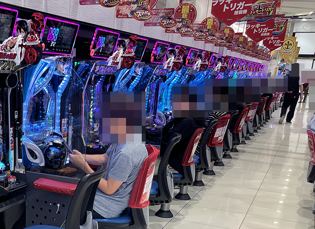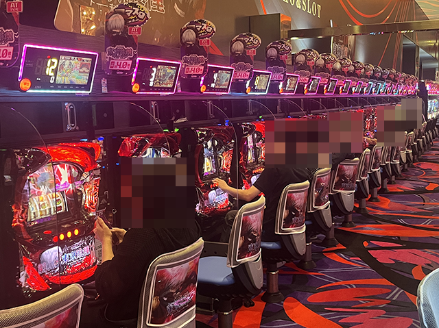 店内をみてみると、パチンコとパチスロの両方で、新台が人気を集めていた。