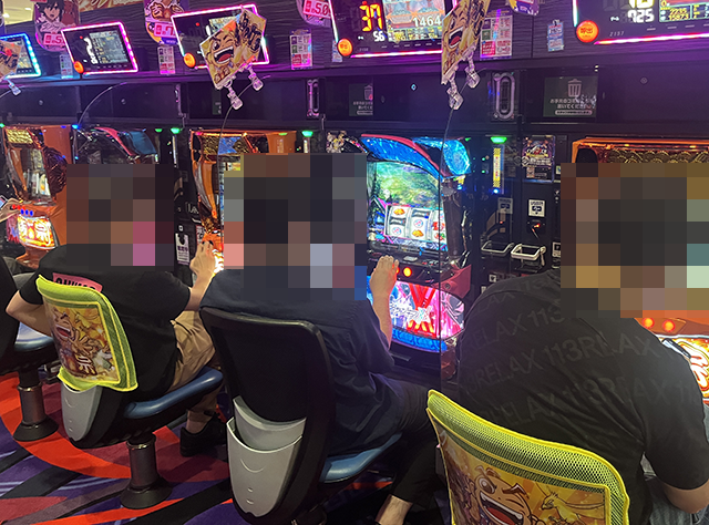 14時半ごろは、「スマスロ 東京リベンジャーズ」に空き台がみあたらず、明るい表情で遊技をおこなっているプレイヤーが多い。