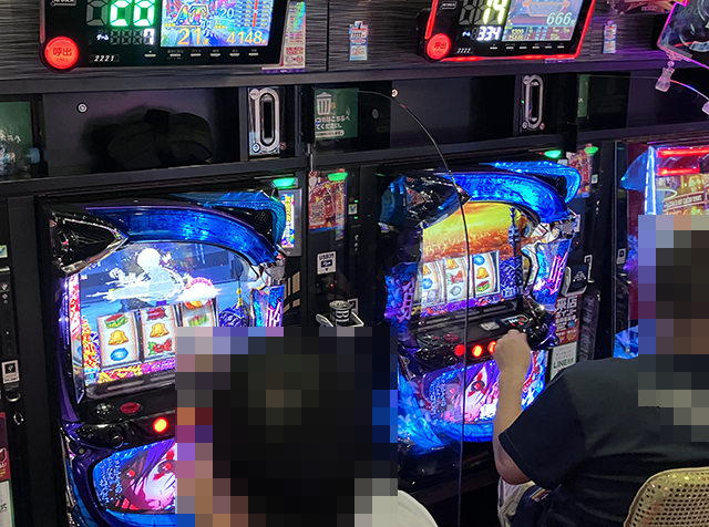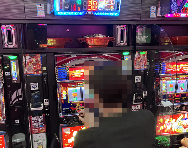 「ネオアイムジャグラーEX」や「マイジャグラーⅤ」に、持ち玉を使って遊技をおこなう姿があった。