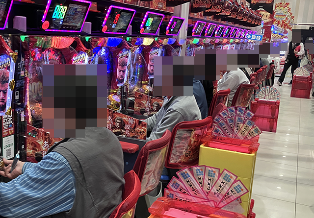 プレイヤーは持ち玉を使い、楽しそうに遊技中。