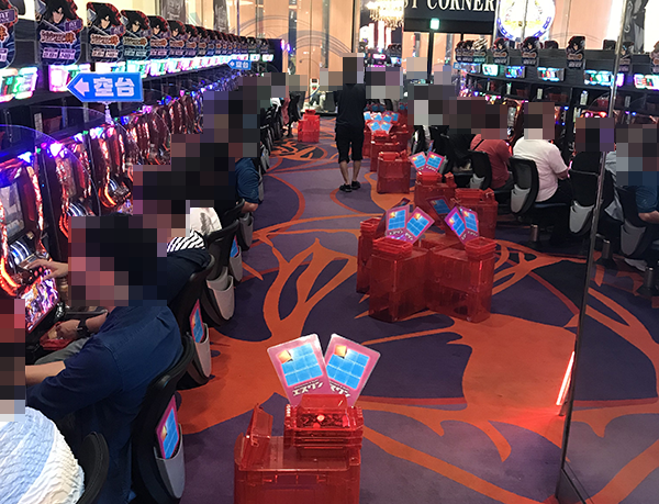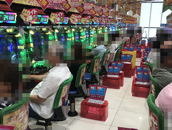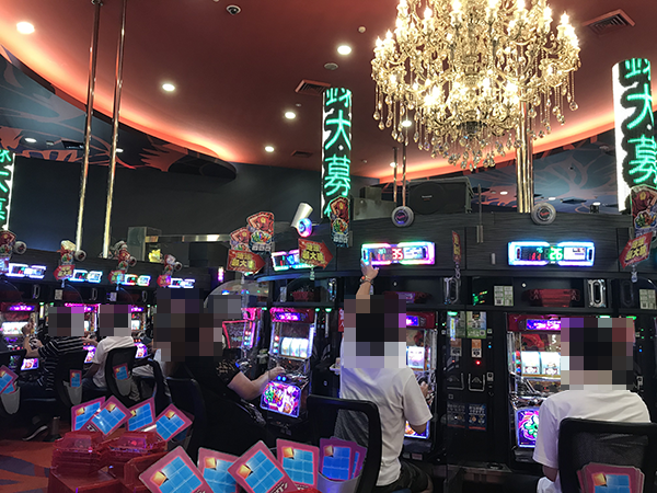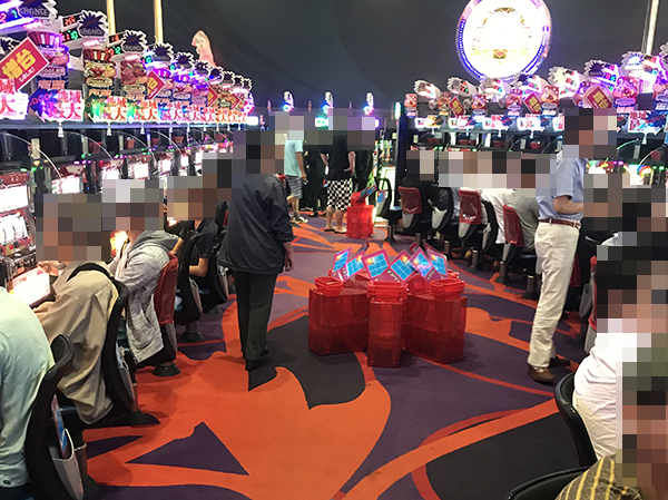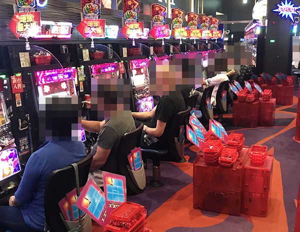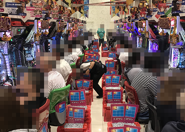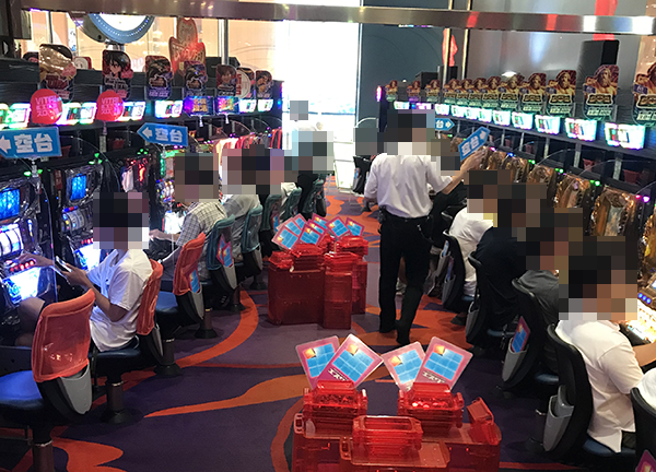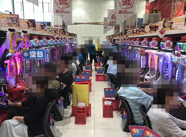 遊技を満喫しているといった姿が多く、パチンコ全体がにぎやかなムード。