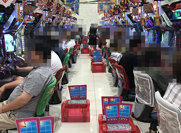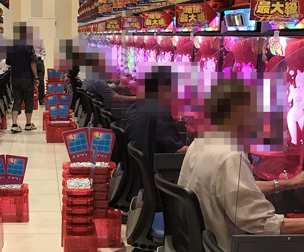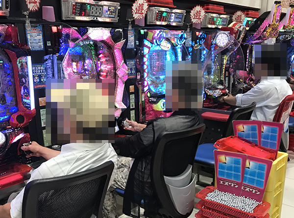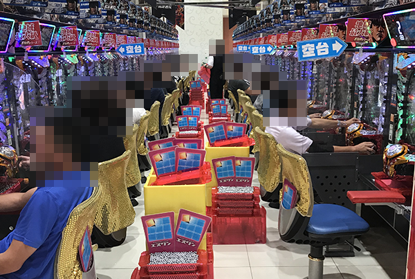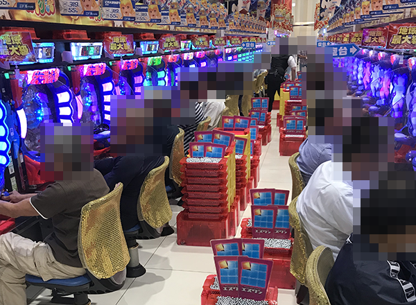 パチンコにも笑顔が多く、大にぎわいといった状況。