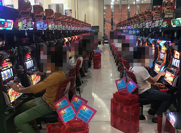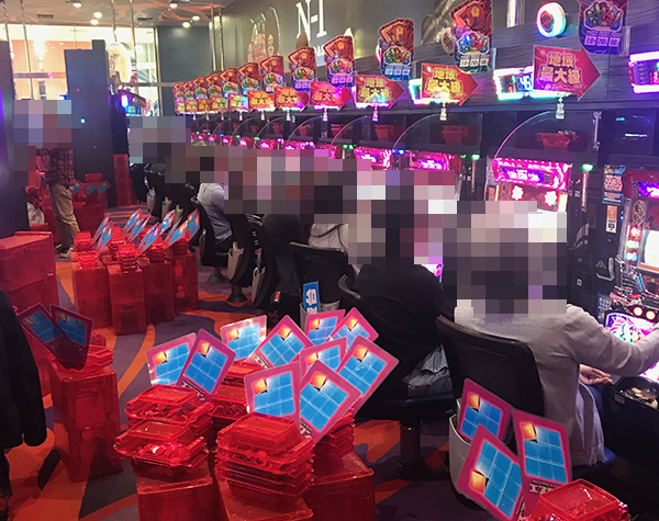 パチンコとパチスロの両方が群雄割拠といった状況!! 華麗な技を披露しているプレイヤーは、数々の戦で勝利をおさめてきた戦国大名の姿とかぶってみえた。