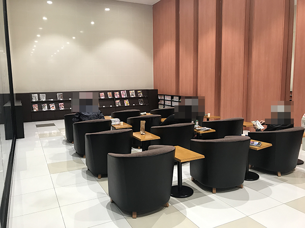 ガラス張りとなっている休憩スペースには、ソファや雑誌などがあるため、気分転換もバッチリじゃろう。