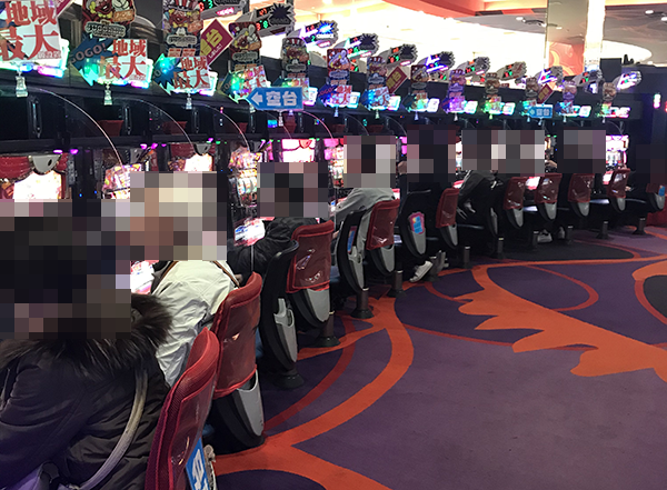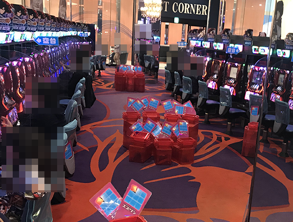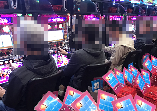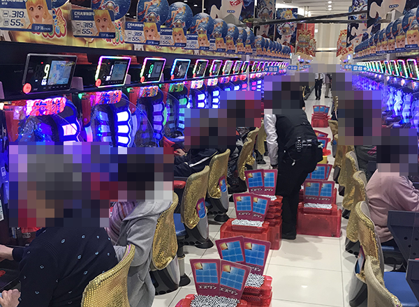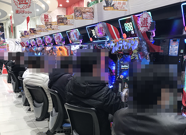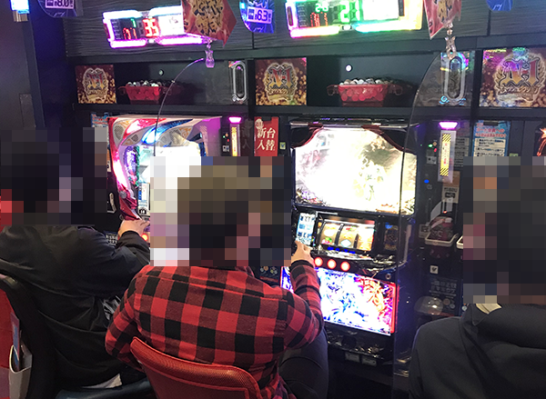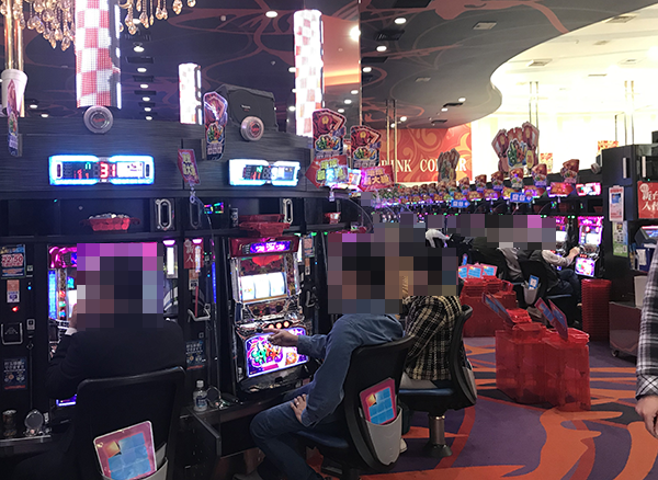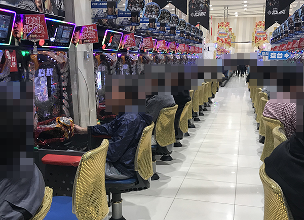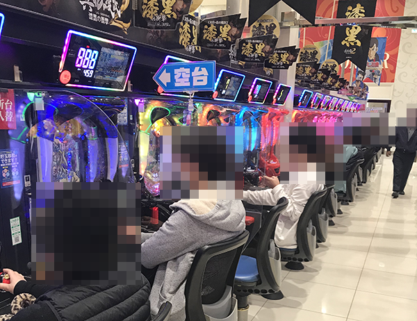 パチンコとパチスロの両方がにぎやかな状況! 戦を制する戦国大名の姿を連想させるほどに、プレイヤーたちは意気軒昂と遊技をおこなっていた。