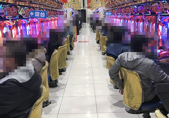 「ぱちんこCR真・北斗無双」や「P大工の源さん 超韋駄天」などで遊技をおこなっている方が多く、活気のある光景が広がっていました。