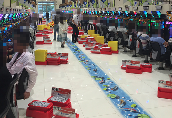 店内では大勢のプレイヤーが遊技を楽しんでおり、いくつもの場所に鮮やかな光景が広がっていた。