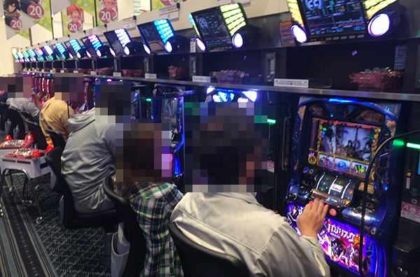 20円パチスロをみると、新台の「パチスロ北斗の拳 修羅の国篇」と「バジリスク~甲賀忍法帖~絆」に目をひくようなパフォーマンスを披露している姿を確認。周囲のプレイヤーから注目を集めるほどに盛況であった。