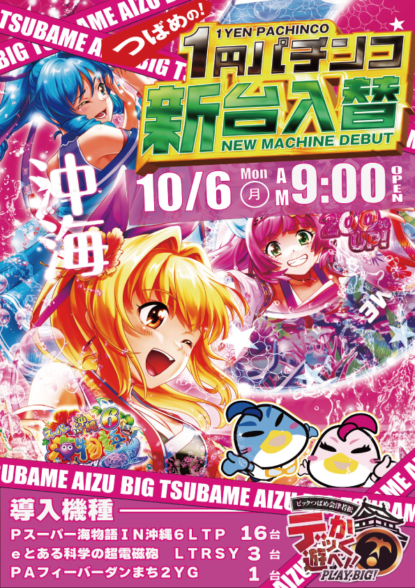 ☆会津エリア最大☆新台入替!! 最新機種を打つならつばめへ♪