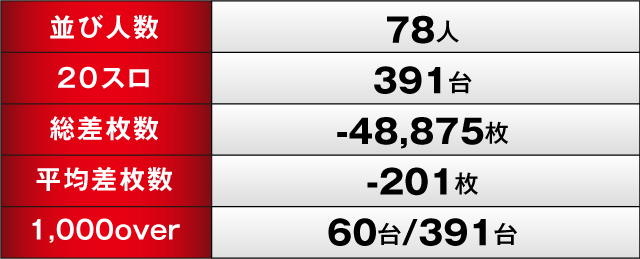 冒頭でお伝えしたように総差枚数-48,875枚という結果により、この日は黒星となってしまった。マイナスにはなってしまったものの、内容を見れば充実感のあるものとなっている。それだけ同ホールが様々な準備を仕掛けていたということであり、今後は実力を存分に発揮してくれることに期待できる。気になった方は引き続き同ホールの動向などに注目して、入念な準備を進めておくことをオススメする!