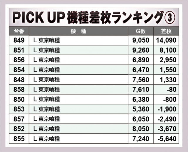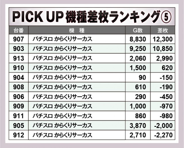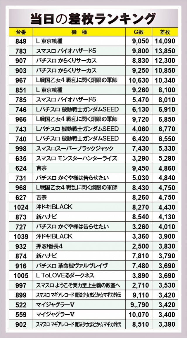 ※差枚数順に掲載しています。