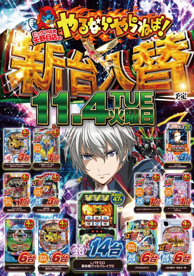 11月最初の大型新台入替(予定)!新台は承認受取後開放です!