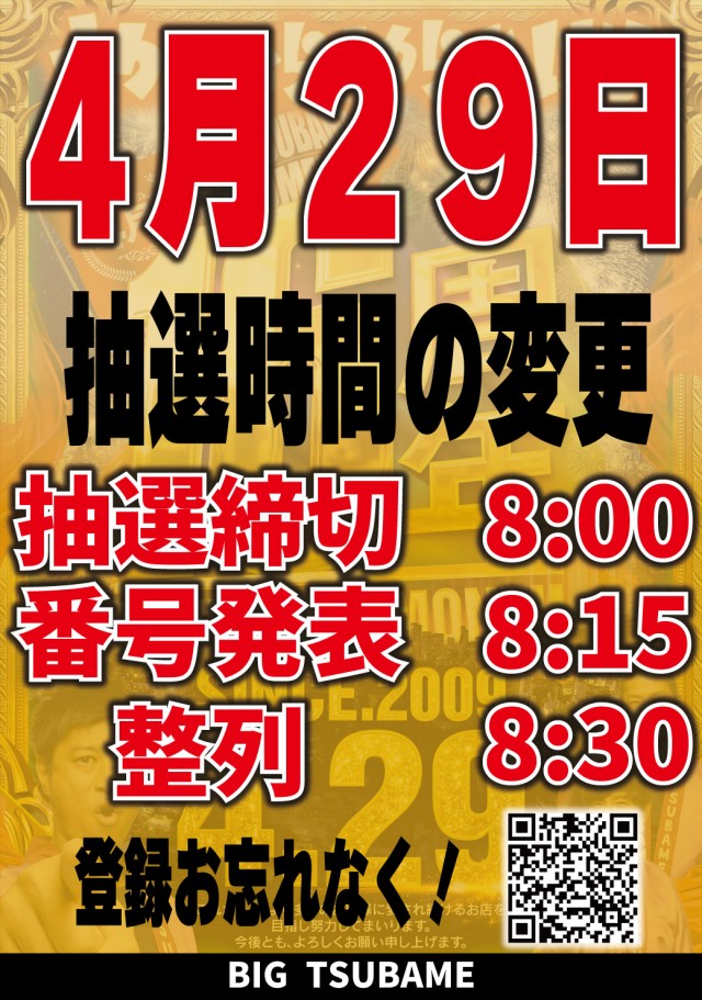 4月3日からオンライン抽選に変わりました。【8:30 参加締切】【8:45 番号発表】【8:50 整列】【9:00 入場】 |