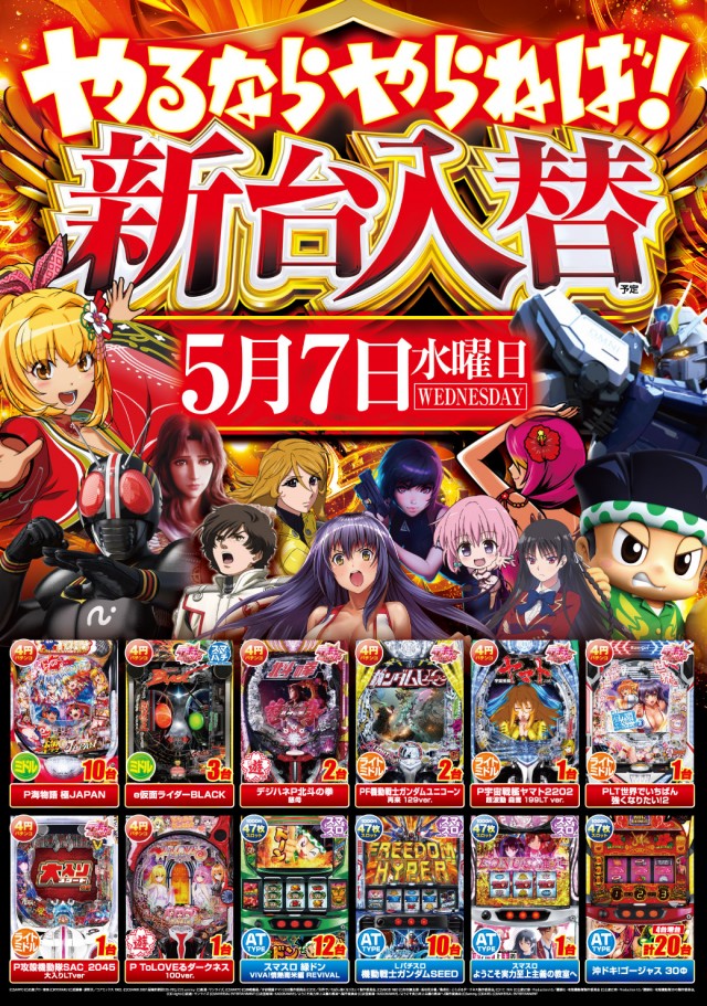 本日新台入替(予定)! 新台開放は承認受取後!