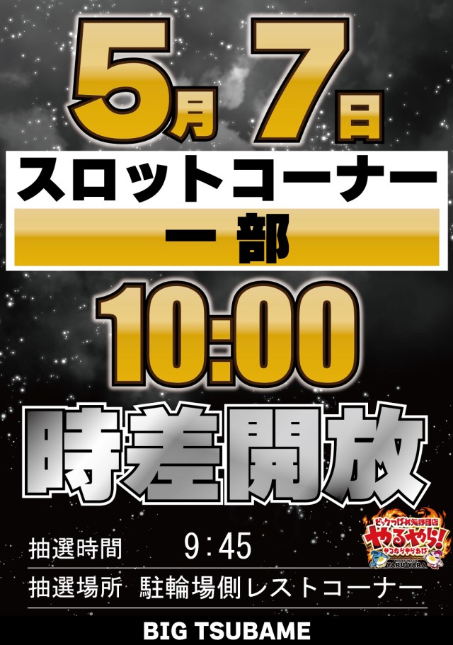 最新台導入済み!本日スロットコーナー一部時差開放となります。