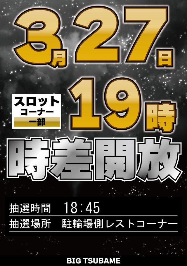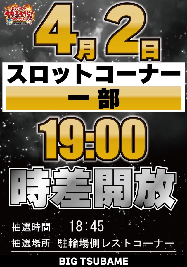 【やるやら】本日スロットコーナー一部時差開放となります!