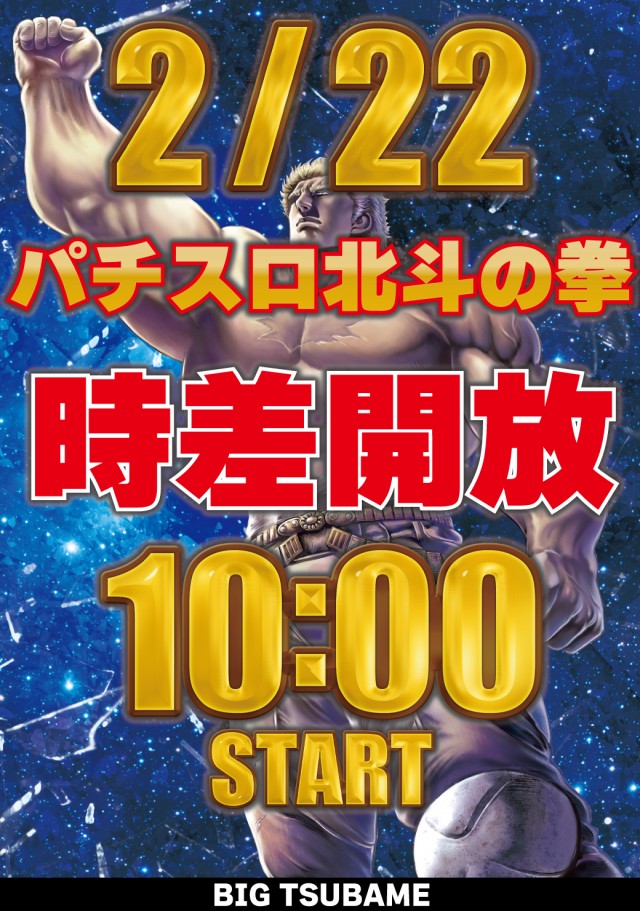 本日『パチスロ北斗の拳』は【10:00】開放となります!