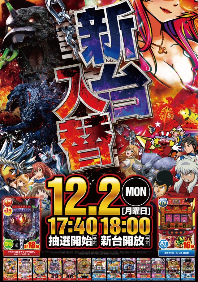 新台入替作業終了!! 新台開放は【18:00】予定!!