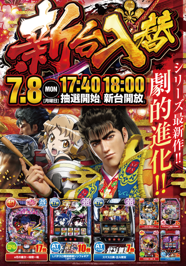 本日新台入替!!(予定) 新台慶次地域最速導入!!