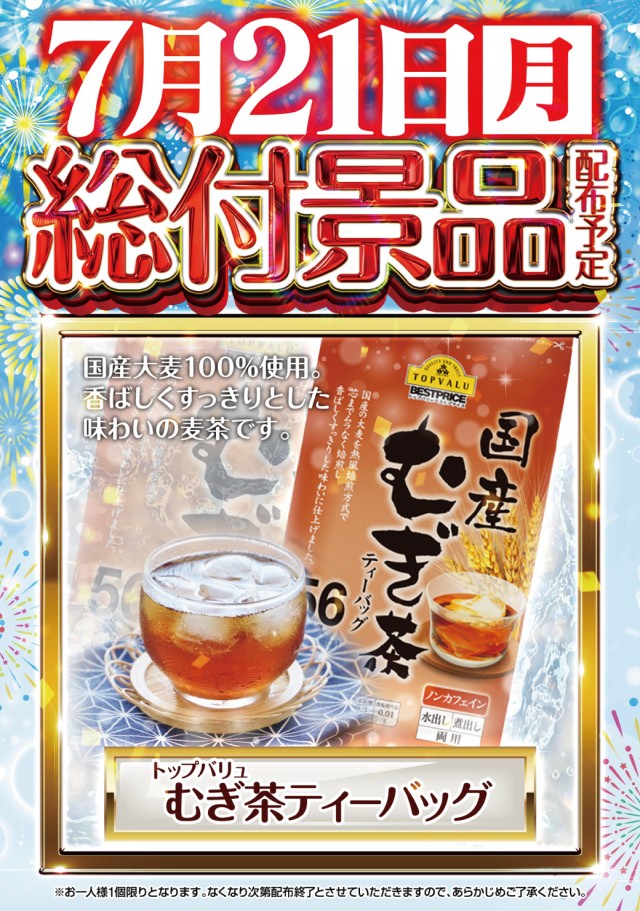 本日総付景品配布!暑い夏にむぎ茶はいかがですか?