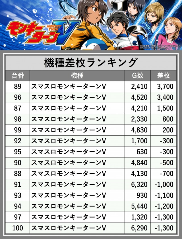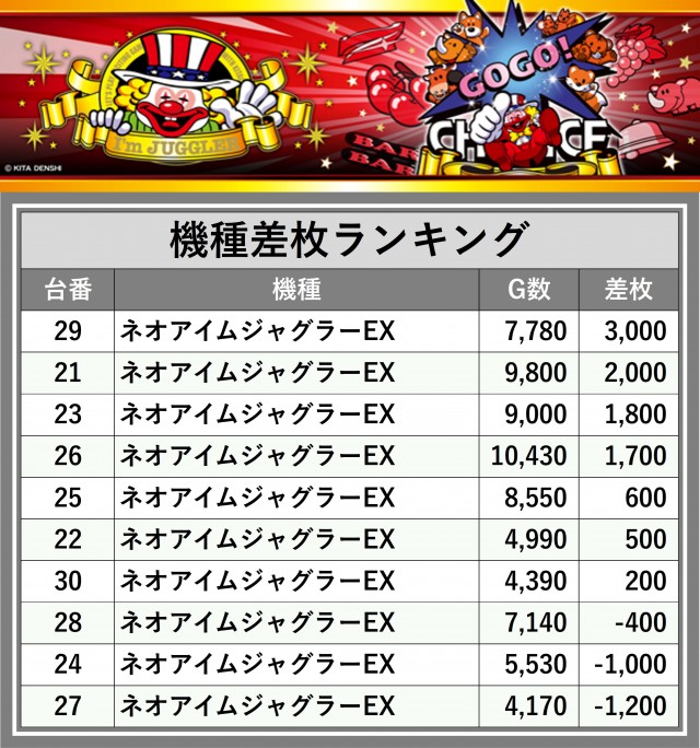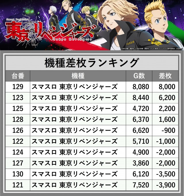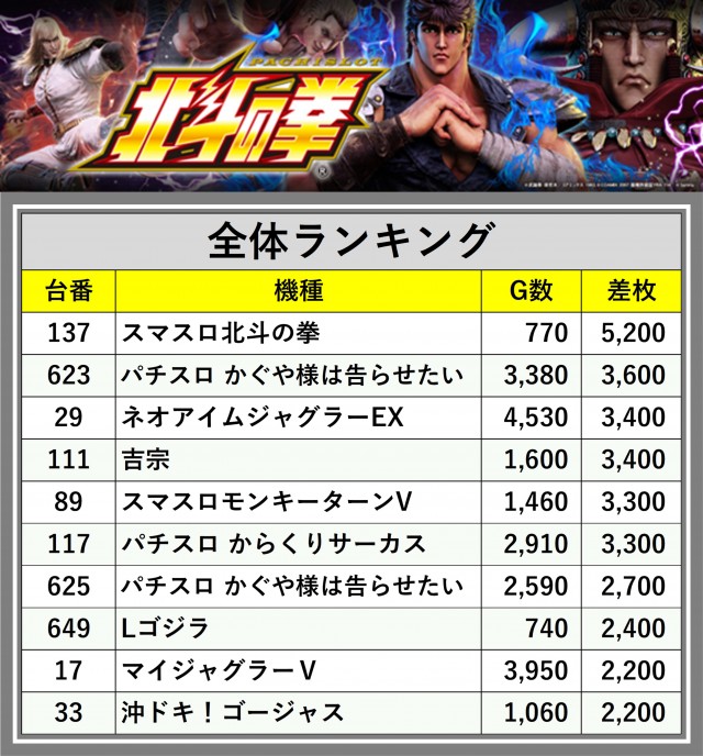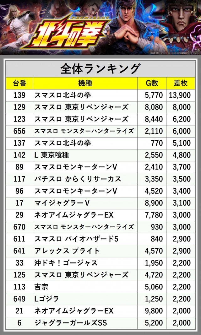 ※差枚数順に掲載しています