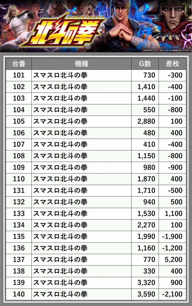 ※台番順に掲載しています