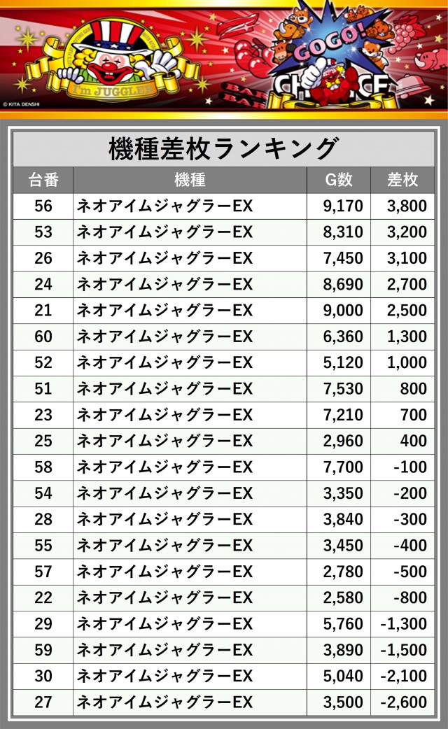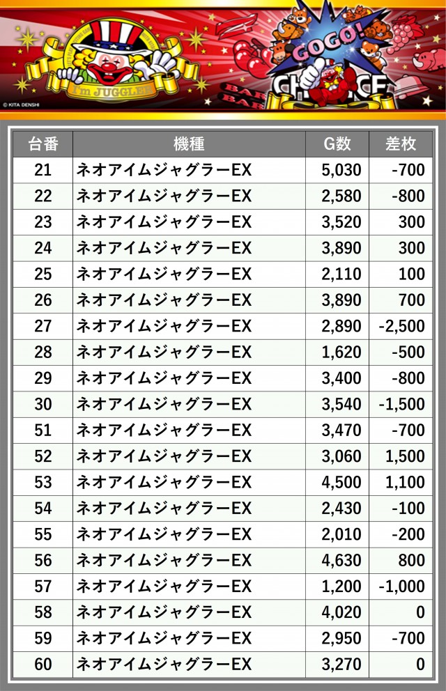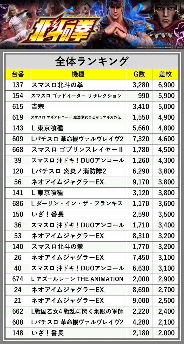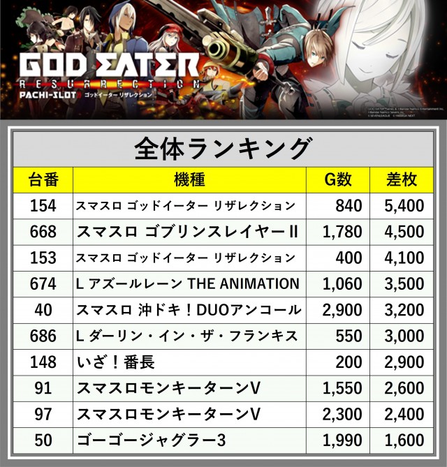 厳選された取材対象機種をはじめ、その他スロット全体から好記録が飛び出した!プレイヤーが楽しんだ1日を下記データにて振り返ってみて欲しい。