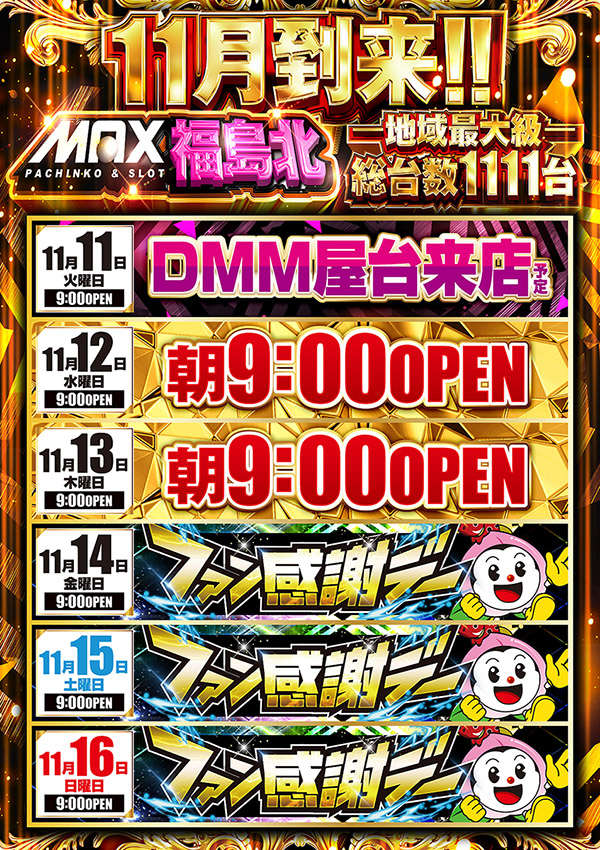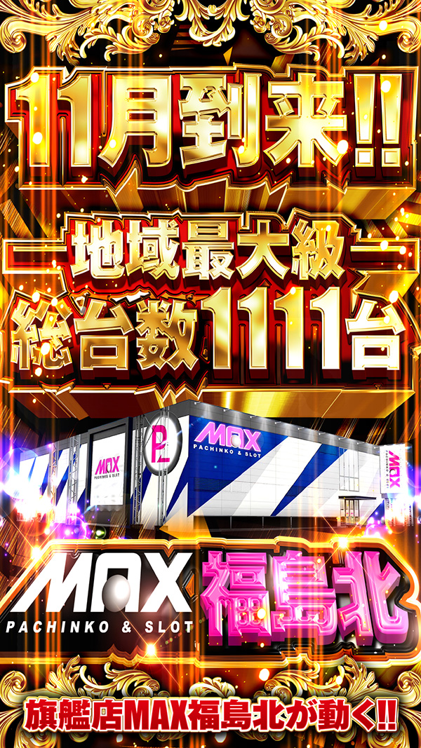 11月到来‼地域最大級‼総台数1111台のマックス福島北で思いっきりお楽しみください❣