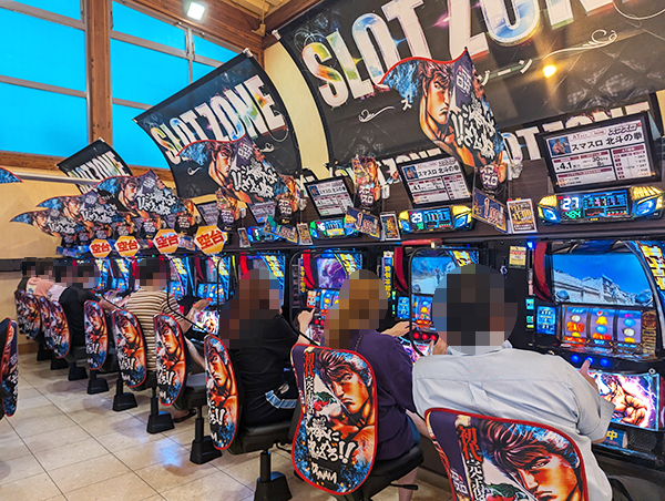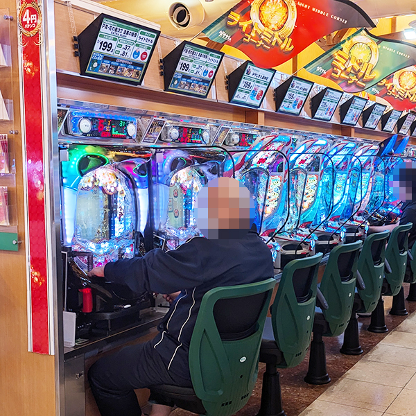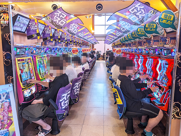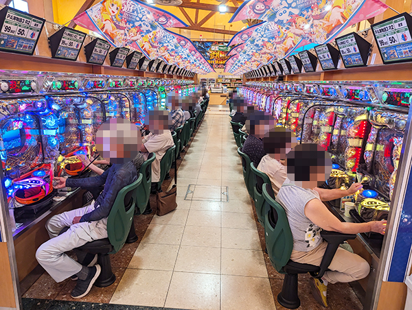100円/89玉パチンコに目を移すと、海物語シリーズに人気が集まっており、ほぼ満席となるほどのにぎわいを見せていた。
