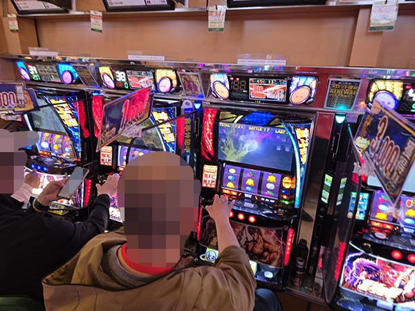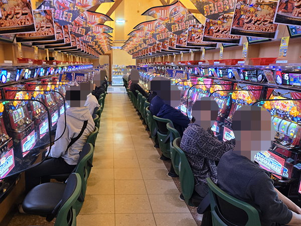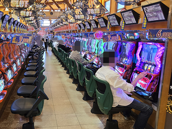500円/89枚パチスロの稼働も高い。楽しそうにレバーを叩くプレイヤーの姿を複数目撃している。