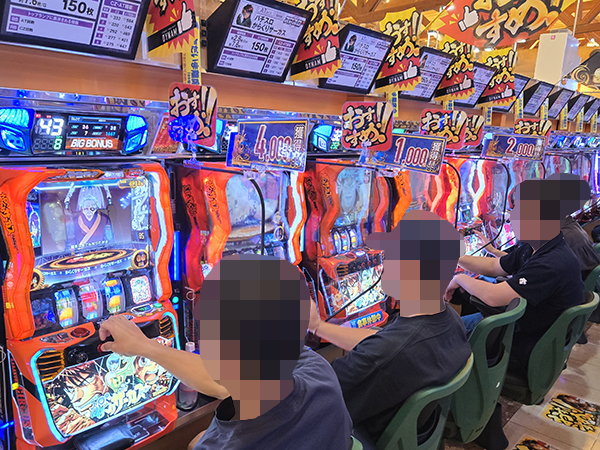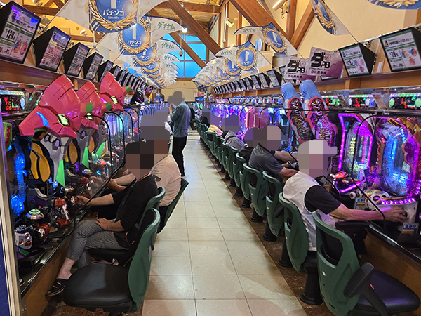 14時ごろの100円/89玉パチンコでは「PAコマコマ倶楽部 with 坂本冬美 ごらくバージョン」や「P新世紀エヴァンゲリオン〜未来への咆哮〜PREMIUM MODEL」で好調なプレイヤーが多数見受けられ、時折見せる嬉しそうな表情が印象的だった。