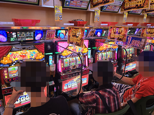 500円/89枚パチスロの支持も厚く、様々な機種で楽しそうにレバーを叩くプレイヤーが見られた。