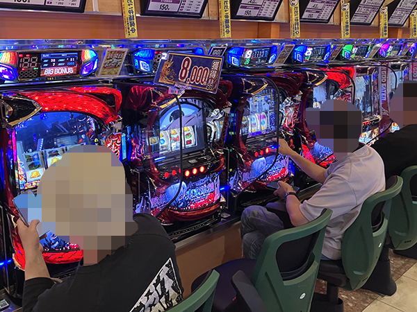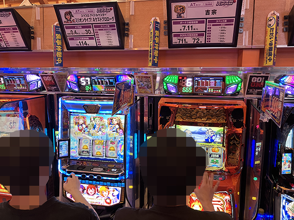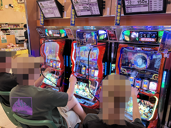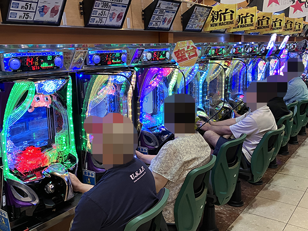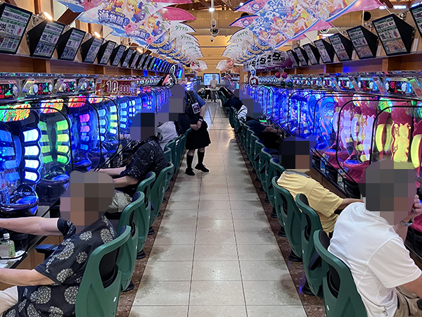 機種ラインナップが魅力的な500円/89枚パチスロでは、実に華やかな光景が広がっていた。
