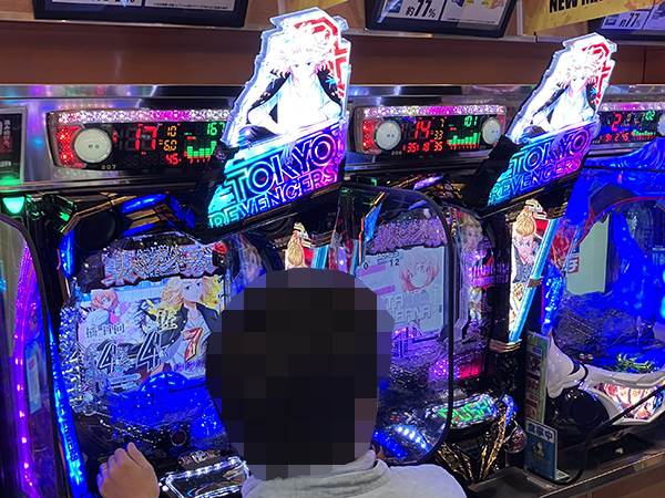 17時半ごろの4円パチンコを見てみると「e 東京喰種」や「eフィーバー炎炎ノ消防隊2 紅丸ver.」、「e東京リベンジャーズ」が盛況の様子。機種のポテンシャルを上手く発揮するプレイヤーを多数確認している。