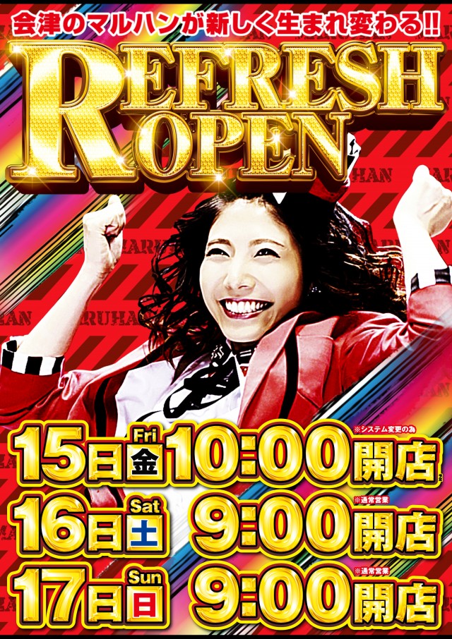 本日9月15日【金曜日】 リフレッシュオープン!10時開店!