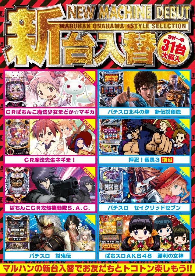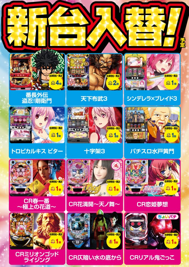 本日【新台入替】只今のお時間から新台がご遊技出来ます!!
