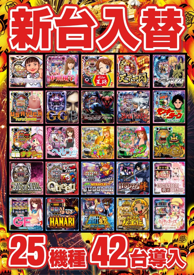 本日【新台入替】只今のお時間から新台がご遊技出来ます!!