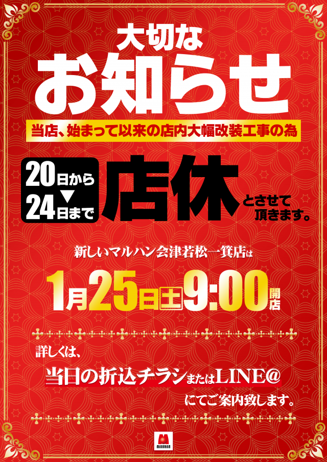 誠に、勝手ではございますが、【 店休日 】とさせて頂きます。