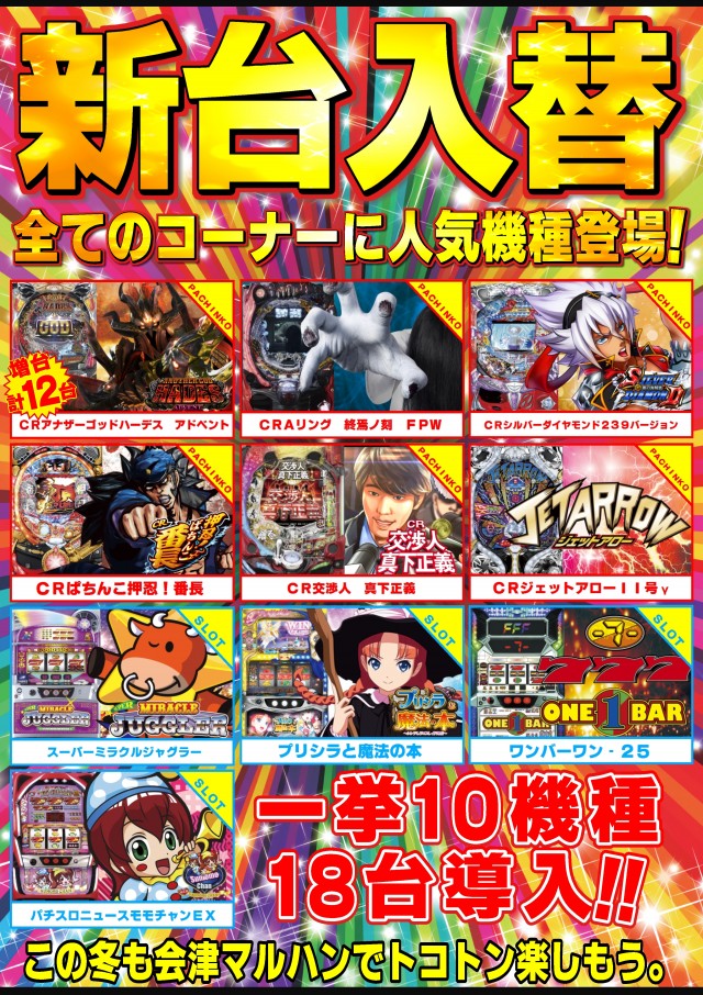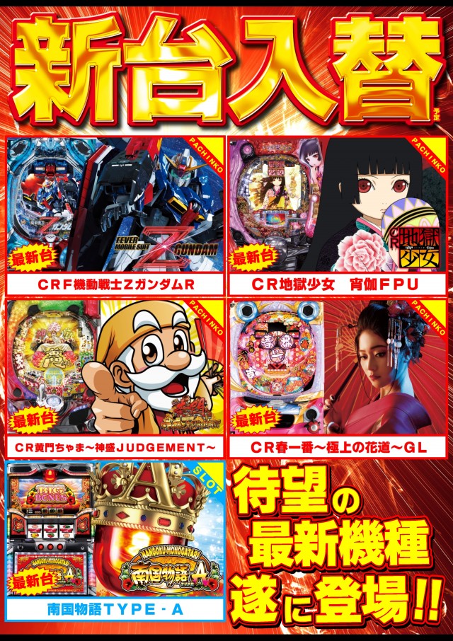 【新台入替】只今の時間から新台がご遊技出来ます!!